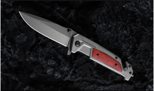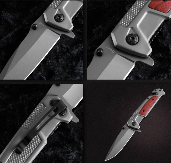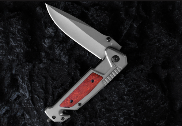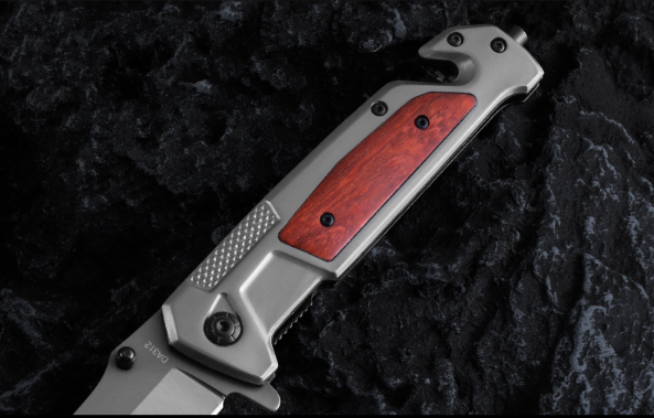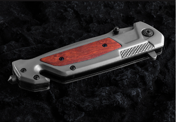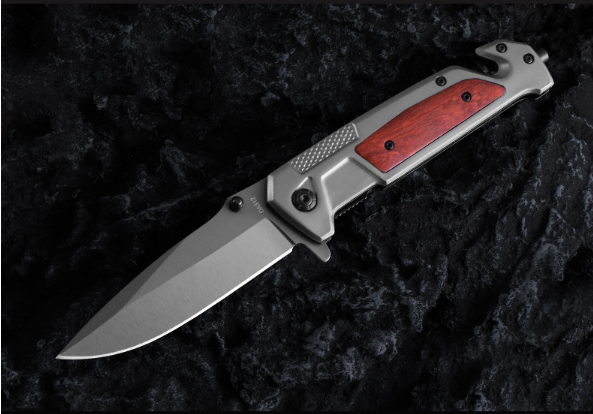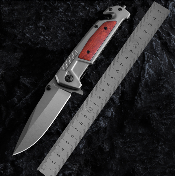 熱賣戶外折疊刀(碳纖+實木手柄)(規格:全長23.4*刃長9.5*刃寬3*刃厚0.37CM)