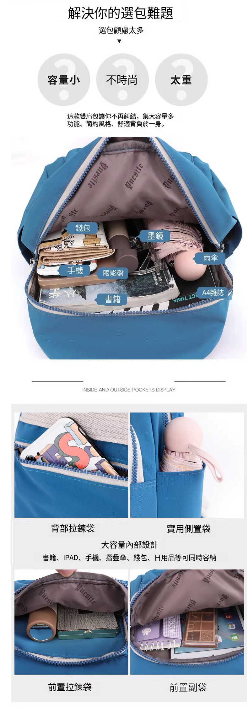 熱賣牛津布雙肩包女 多功能百搭背包 旅行大容量背包【郵藍色】