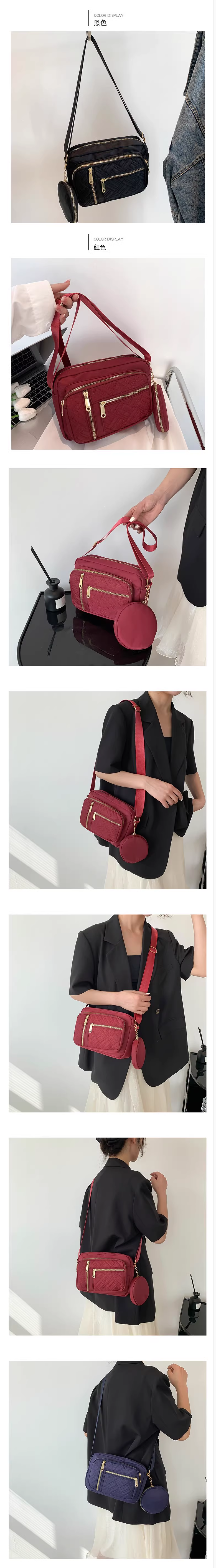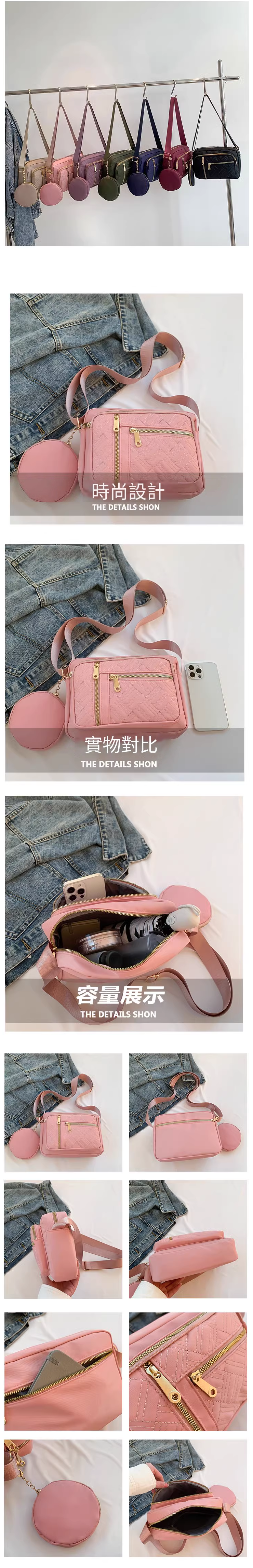 熱賣牛津布包包 休閒斜挎小包 百搭帆布包 輕便多層單肩女包【黑色】