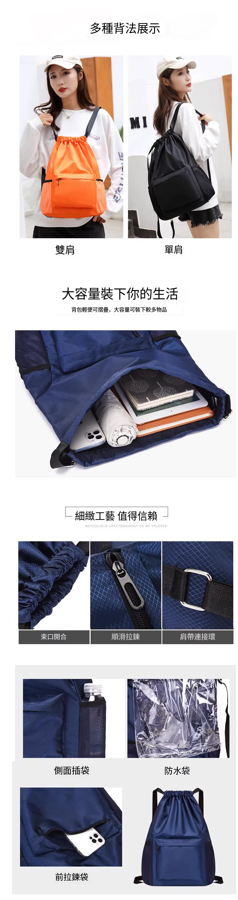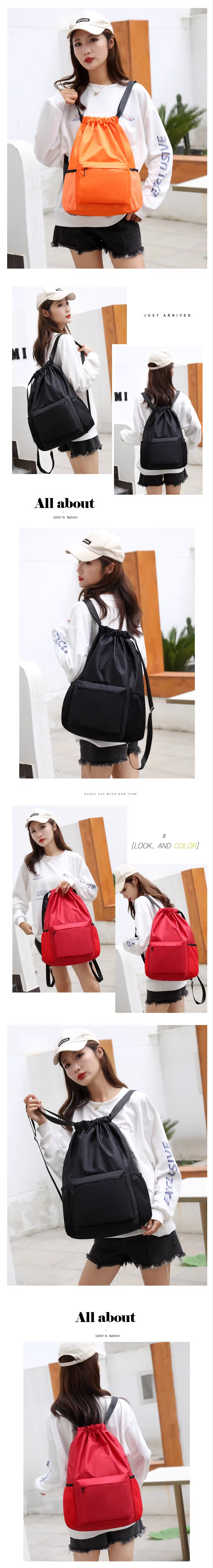 熱賣牛津布大容量抽繩雙肩包女 束口袋 健身包 運動旅行包【天藍色 小號】