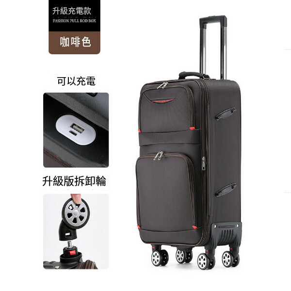 熱賣牛津布行李箱(咖啡色充電款899 24寸)