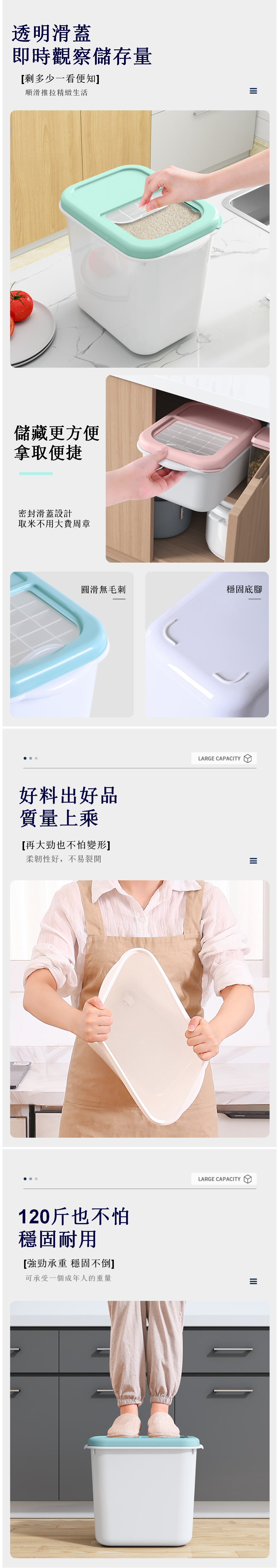 熱賣【2個裝】50斤 特大號儲存罐防蟲防潮大米收納盒(深綠白色+透明)