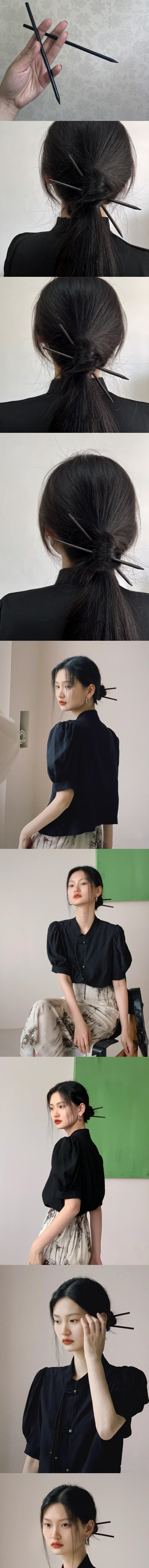 熱賣(2只裝)簡約竹節髮簪(黑色)
