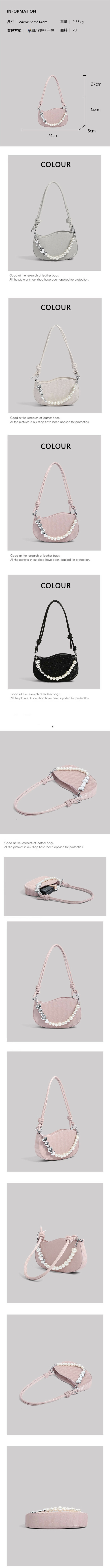 熱賣珍珠鏈條腋下包百搭單肩斜挎包【灰色】【尺寸:24cm*6cm*14cm】