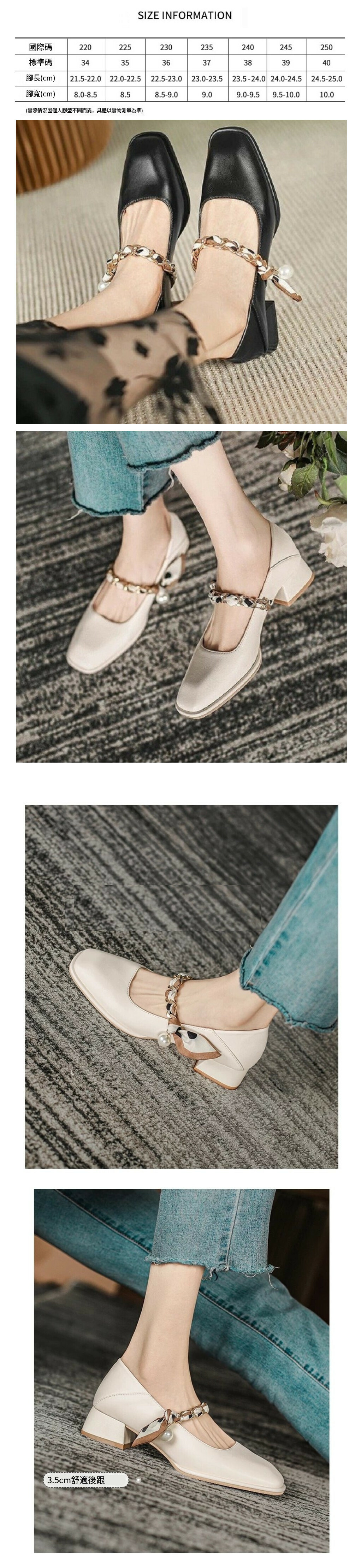 熱賣珍珠尖頭粗跟單鞋【黑色】【35-40碼】(下單後請聯絡客服確認發貨尺碼)