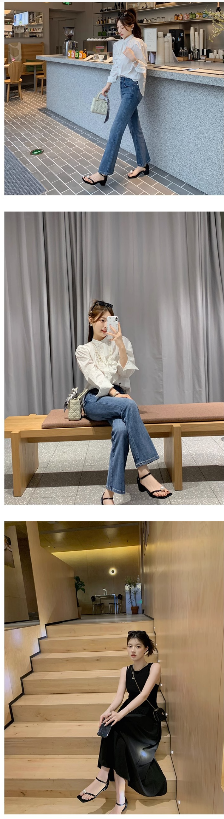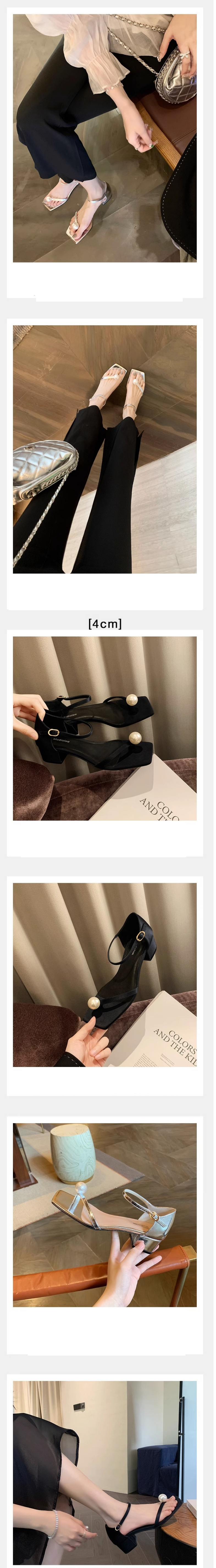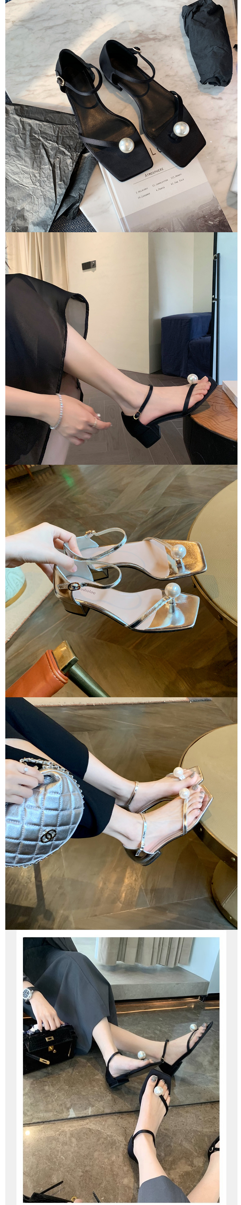 熱賣方頭珍珠夾趾扣帶粗跟涼鞋(銀色跟高4CM/35-40碼)(下單後聯絡客服確認發貨尺碼)