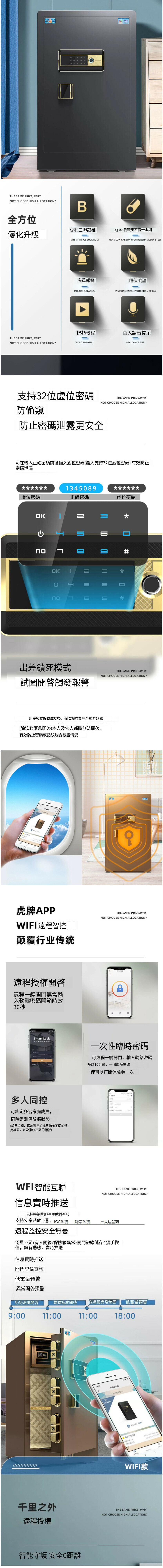 熱賣家用保險箱 夾萬床頭櫃【80尊貴黑(指紋wifi款)+電話報警】