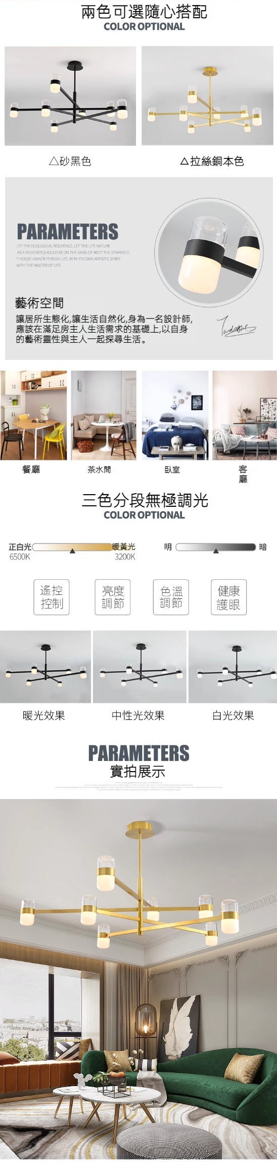熱賣個性創意LED吊燈(拉絲銅本色-6頭小號105cm-無極調光)
