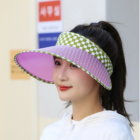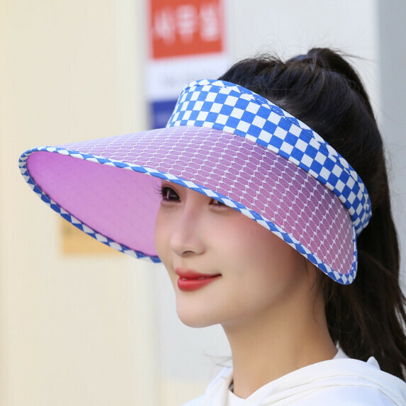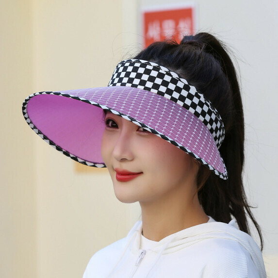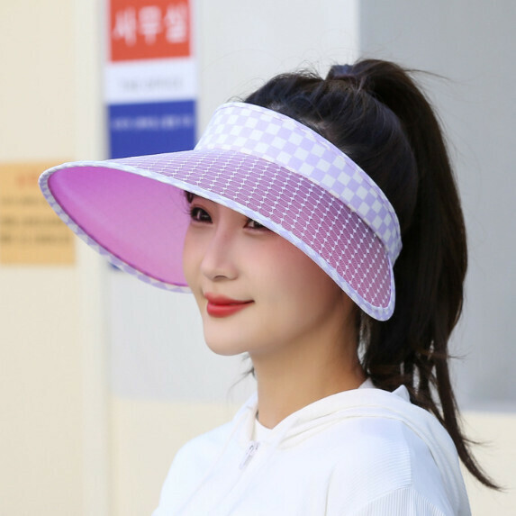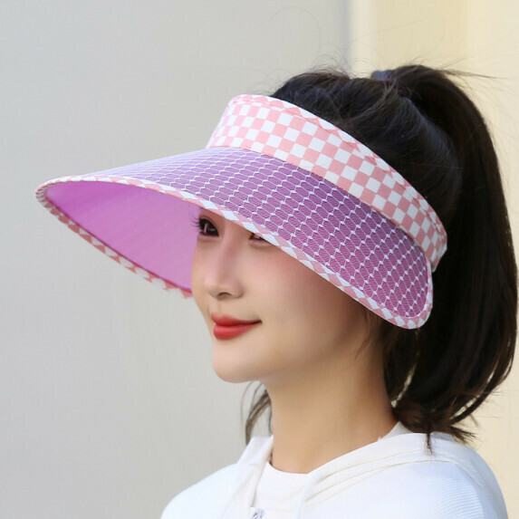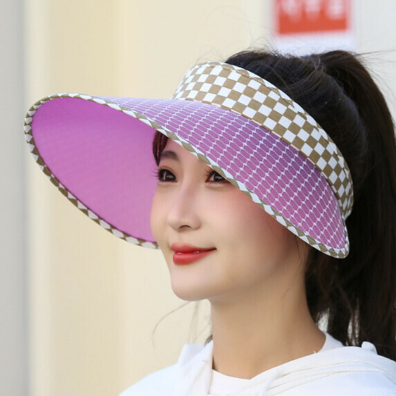 熱賣格子空頂防曬遮陽帽女(紫色)
