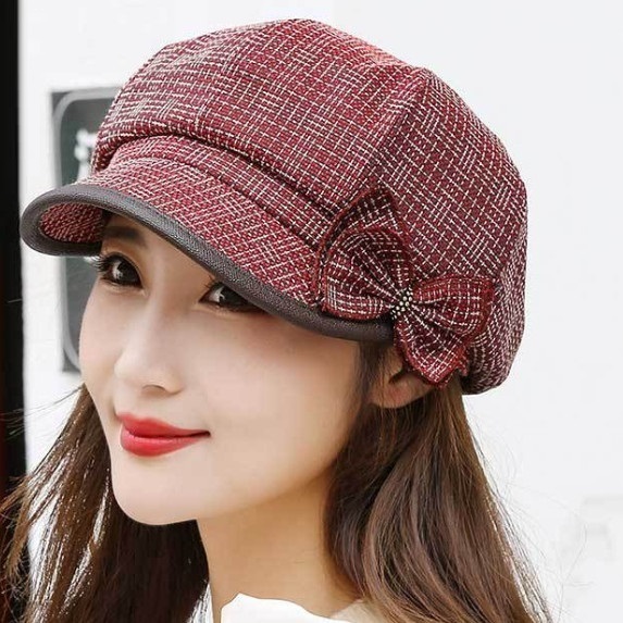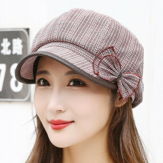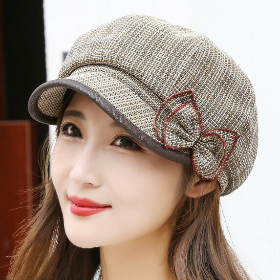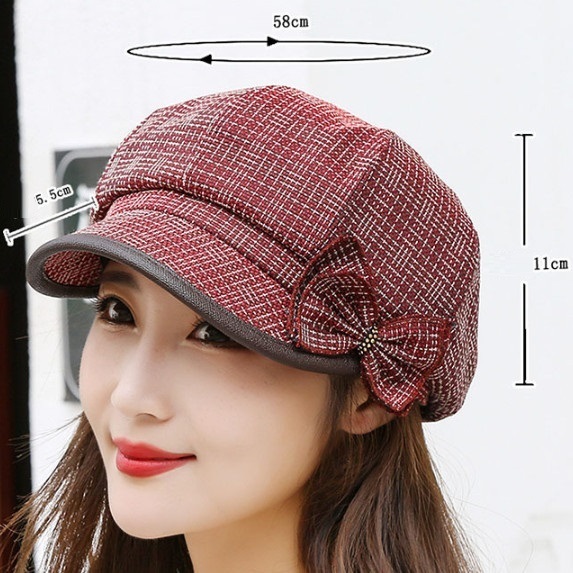 熱賣格紋短簷貝雷帽女(灰色)