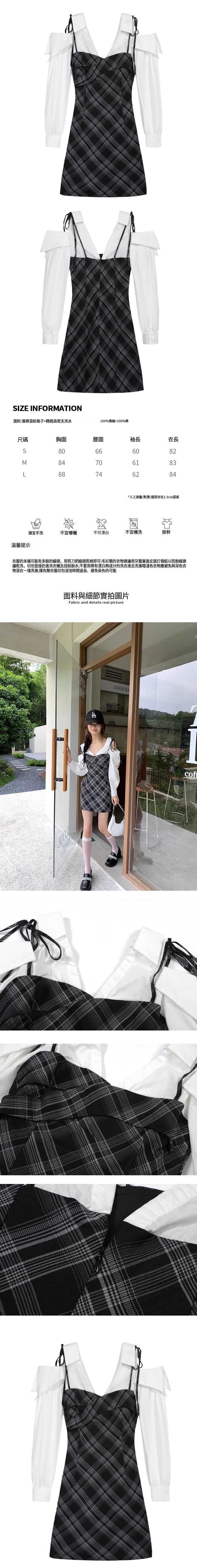 熱賣格紋連衣短裙(假兩件連衣裙)(S-L碼)(下單後聯絡客服確認發貨尺碼)