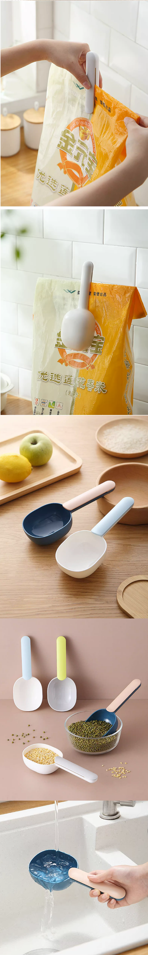 熱賣家用塑料長柄帶夾量勺(粉藍色)