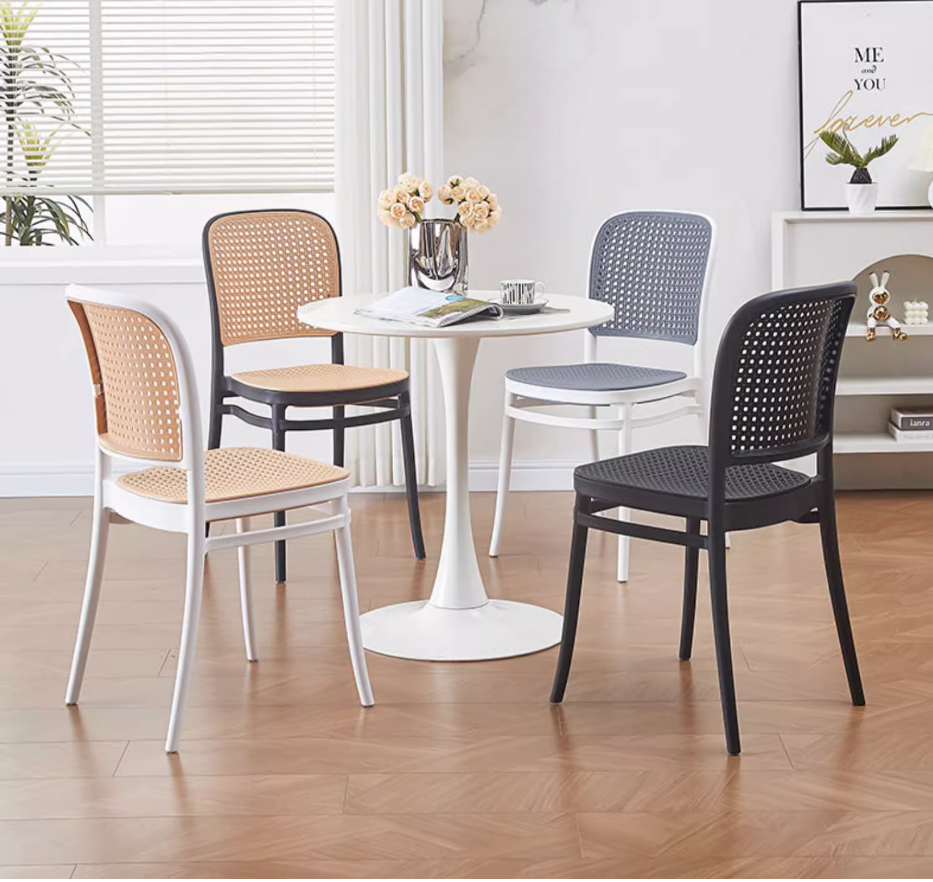 熱賣家用靠背塑料籐編椅子(純黑-籐編座面)(尺寸:高84CM,坐寬41CM)