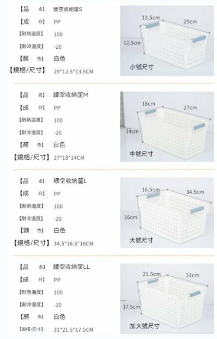 熱賣塑料雜物收納籃(白色中號)