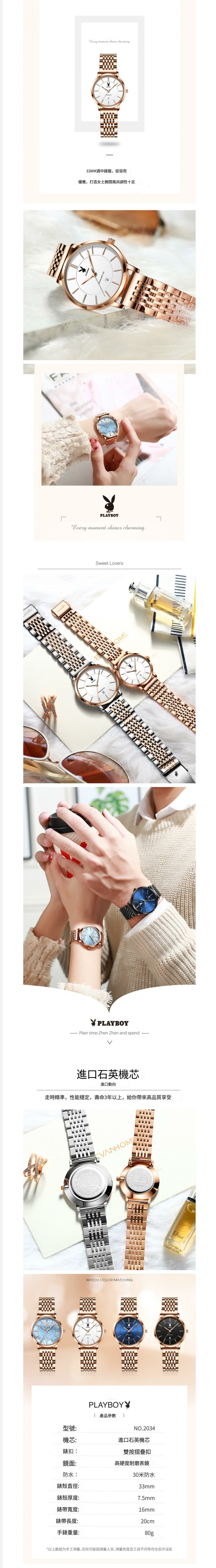 熱賣PLAYBOY簡約女士手錶(玫鋼玫殼黑暗面女)