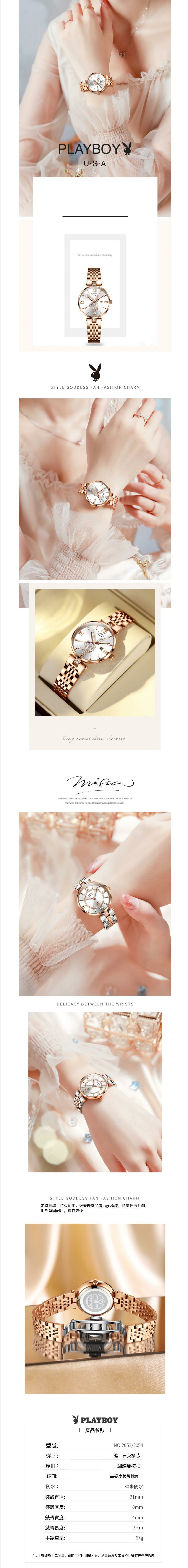 熱賣PLAYBOY女士手錶(鋼帶間玫瑰金鑽面女)