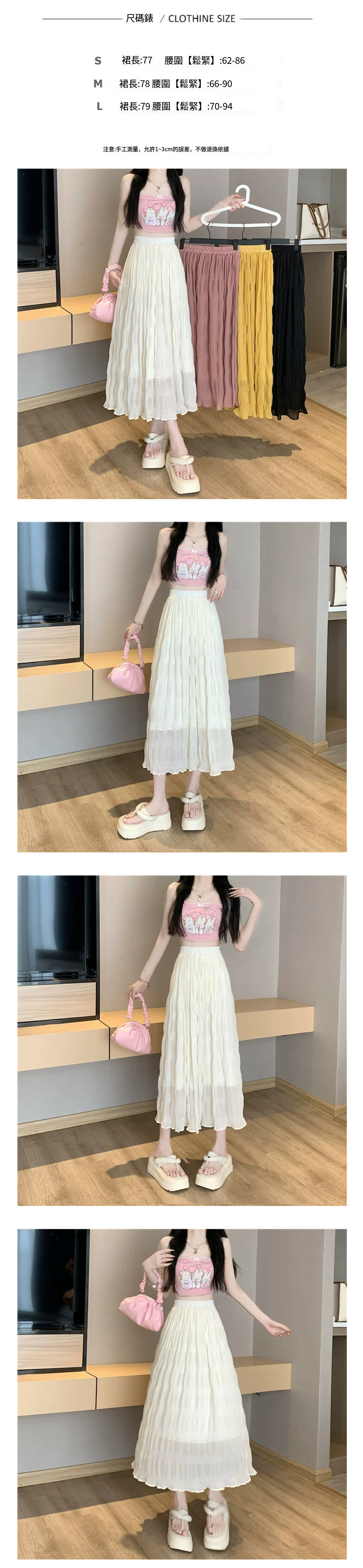 熱賣褶皺長款半身裙【杏色】【S-L碼】(下單後請聯絡客服確認發貨尺碼)