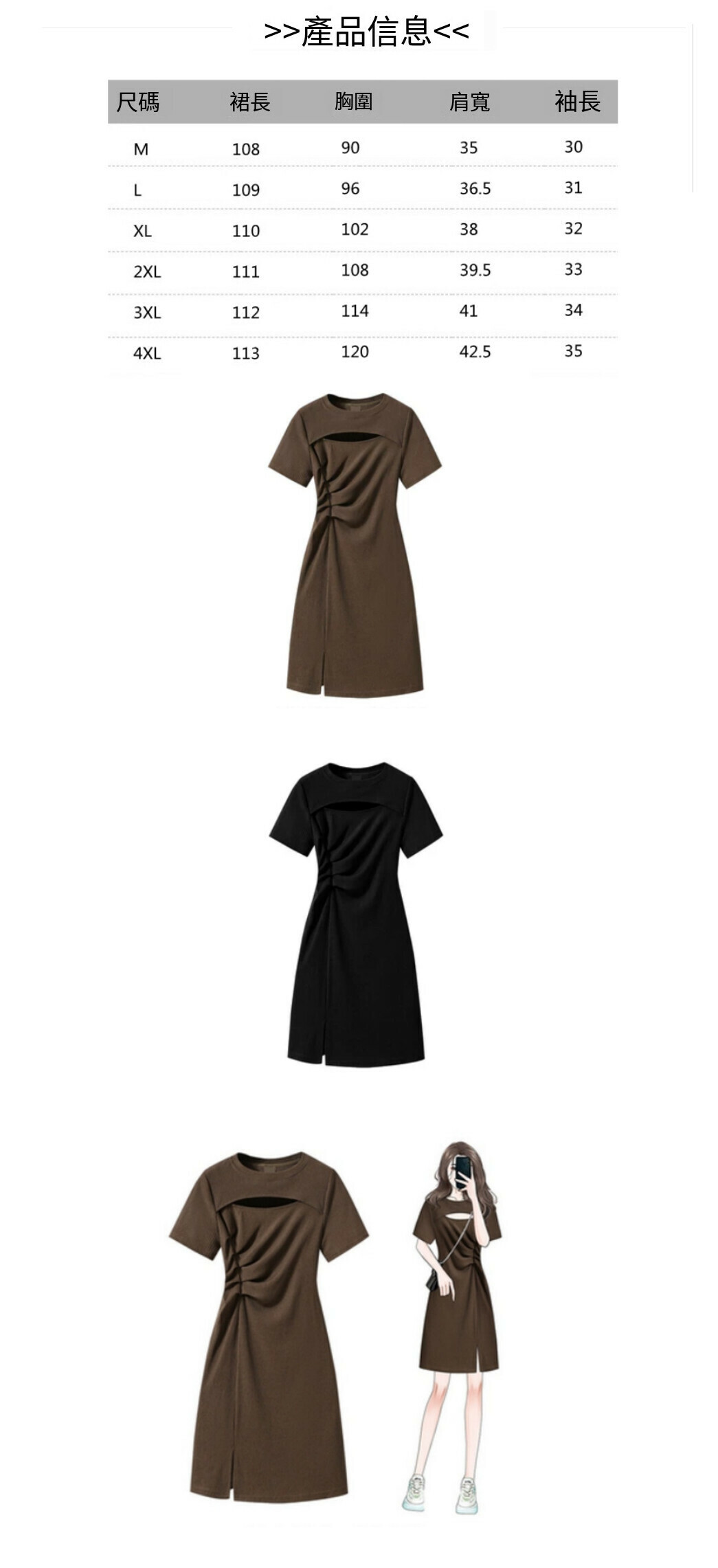 熱賣褶皺開叉連衣裙【黑色】【M-4XL碼】(下單後請聯絡客服確認發貨尺碼)