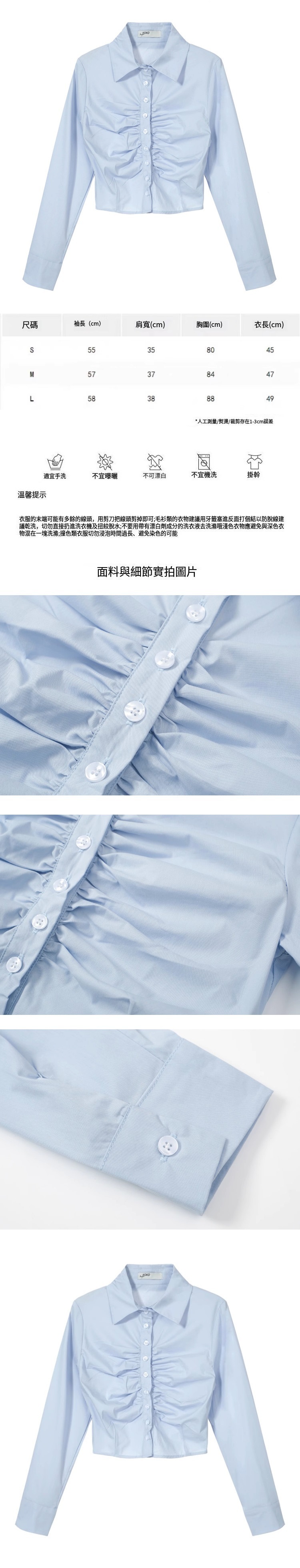 熱賣皺褶收腰藍色長袖襯衫(藍色)(S-L碼)(下單後聯絡客服確認發貨尺碼)