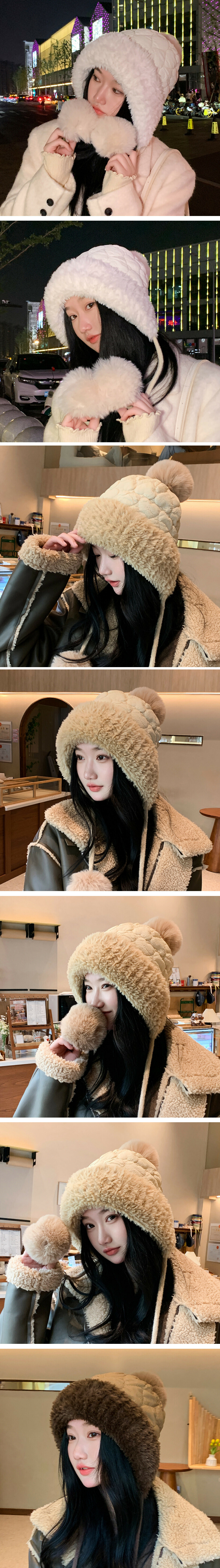 熱賣加絨保暖帽【A-452白色針織毛球帽】【可調節成人均碼】