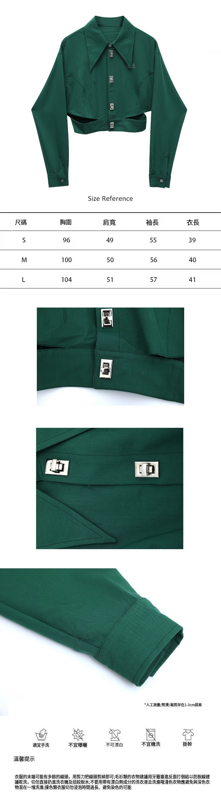 熱賣尖領長袖短款襯衫(墨綠色)(S-L碼)(下單後聯絡客服確認發貨尺碼)