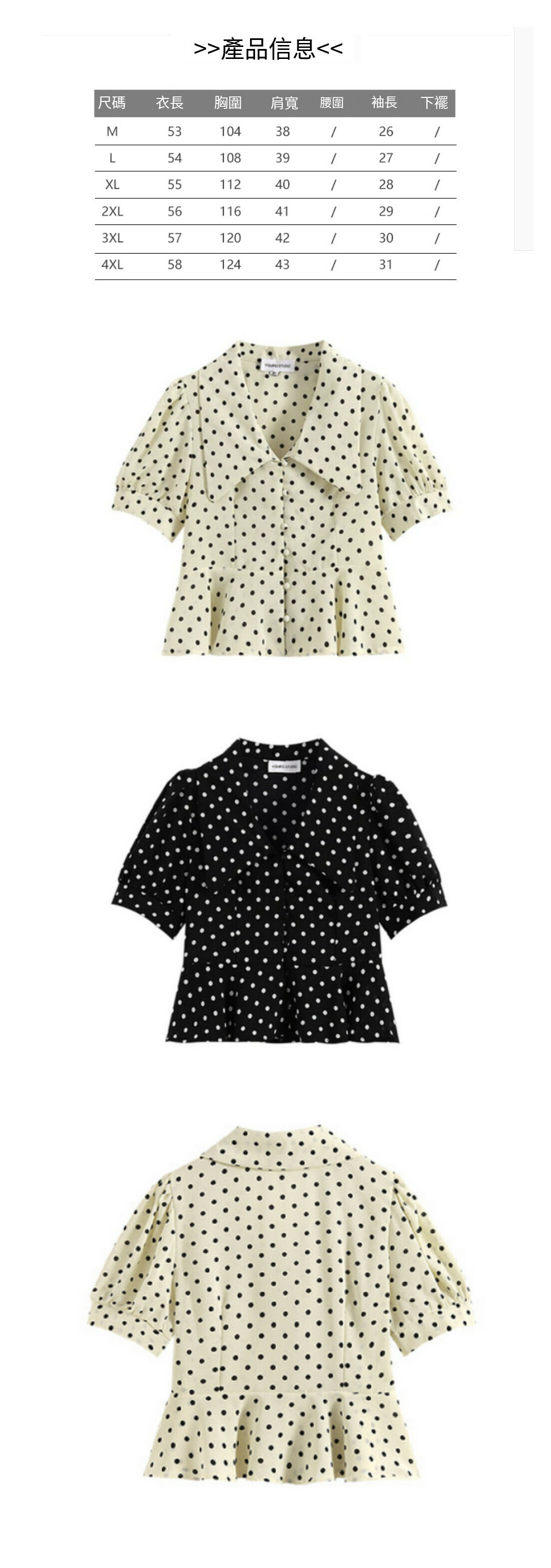 熱賣波點雪紡短袖上衣【黑色】【M-4XL碼】(下單後請聯絡客服確認發貨尺碼)
