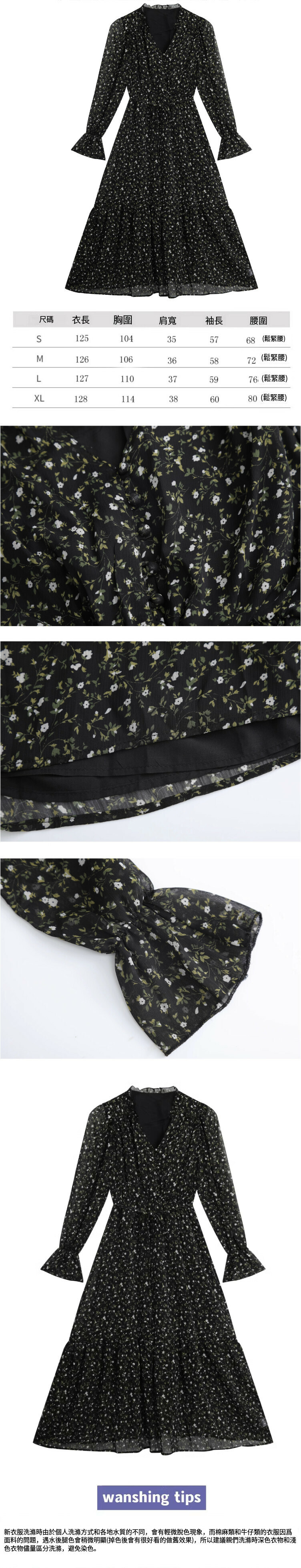 熱賣波點中長款連衣裙(黑底花色)(S-XL碼)(下單後聯絡客服確認發貨尺碼)