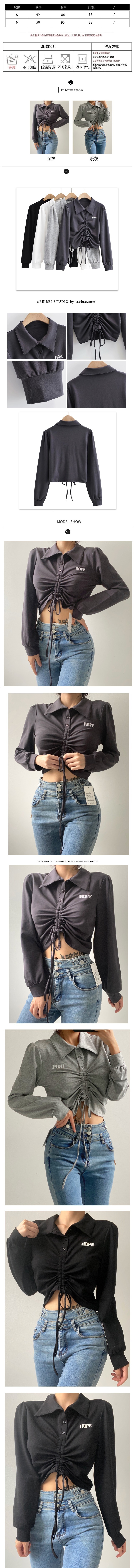 熱賣Polo領抽繩露臍T卹(淺灰色)(S/M碼)(下單後聯絡客服確認發貨尺碼)