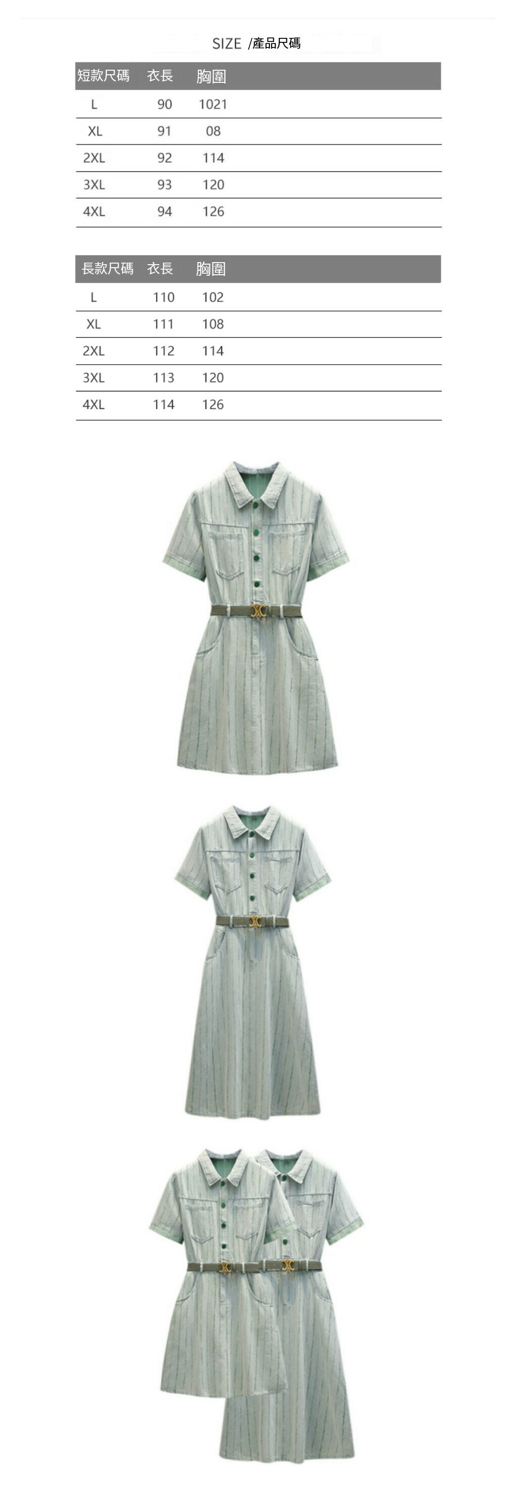 熱賣Polo領連衣裙+腰帶【圖片色(長款)】【L-4XL碼】(下單後請聯絡客服確認發貨尺碼)