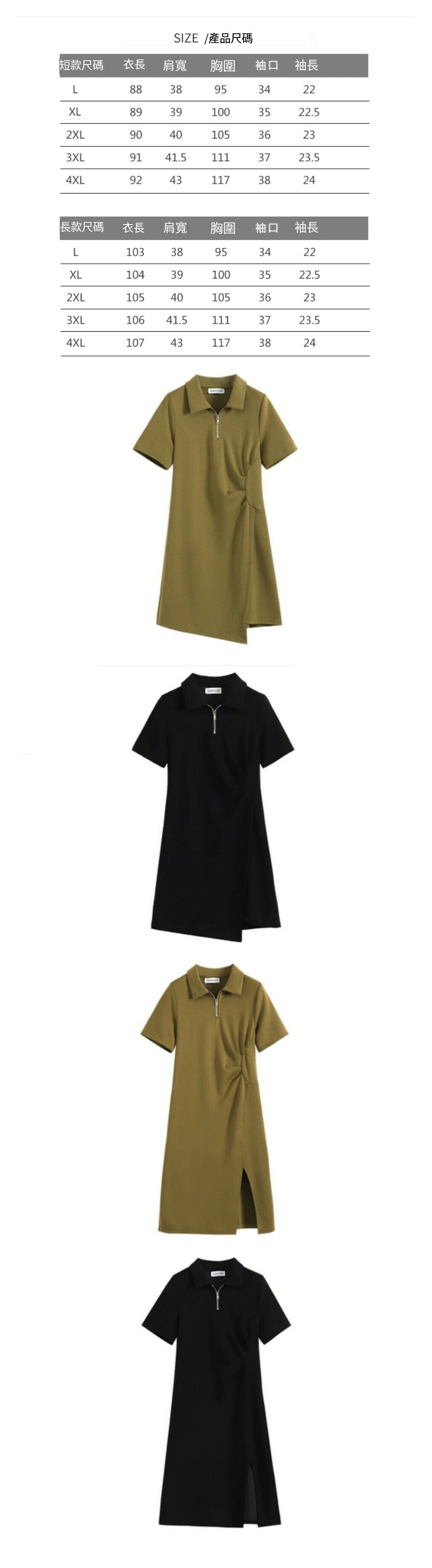 熱賣Polo領連衣裙【黑色(長款)】【L-4XL碼】(下單後請聯絡客服確認發貨尺碼)