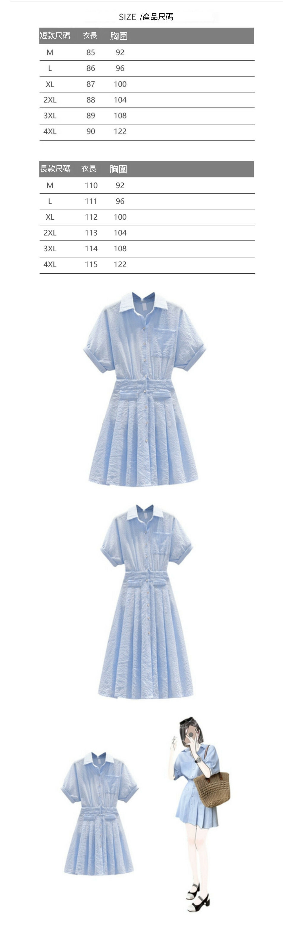 熱賣Polo領連衣裙【淺藍色(短款)】【M-4XL碼】(下單後請聯絡客服確認發貨尺碼)