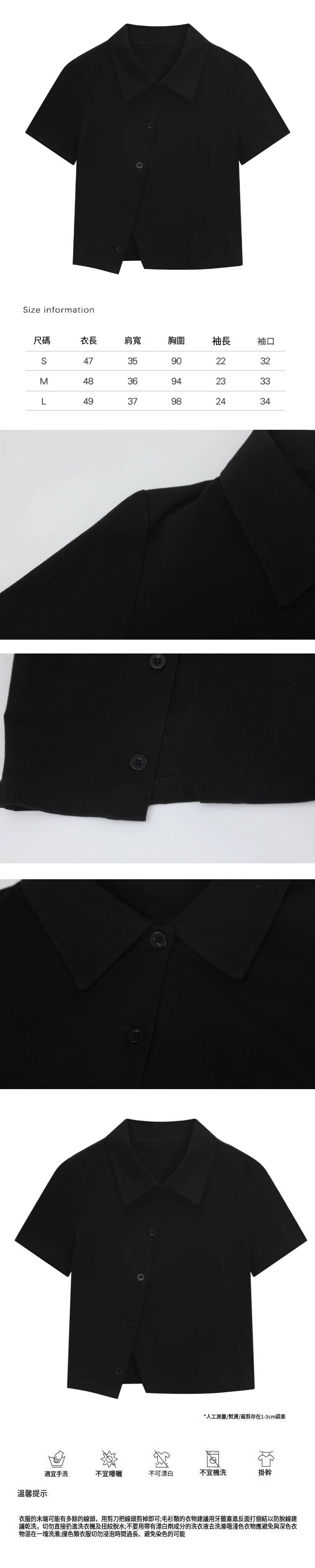 熱賣Polo領高腰短款襯衣(黑色)(S-L碼)(下單後聯絡客服確認發貨尺碼)