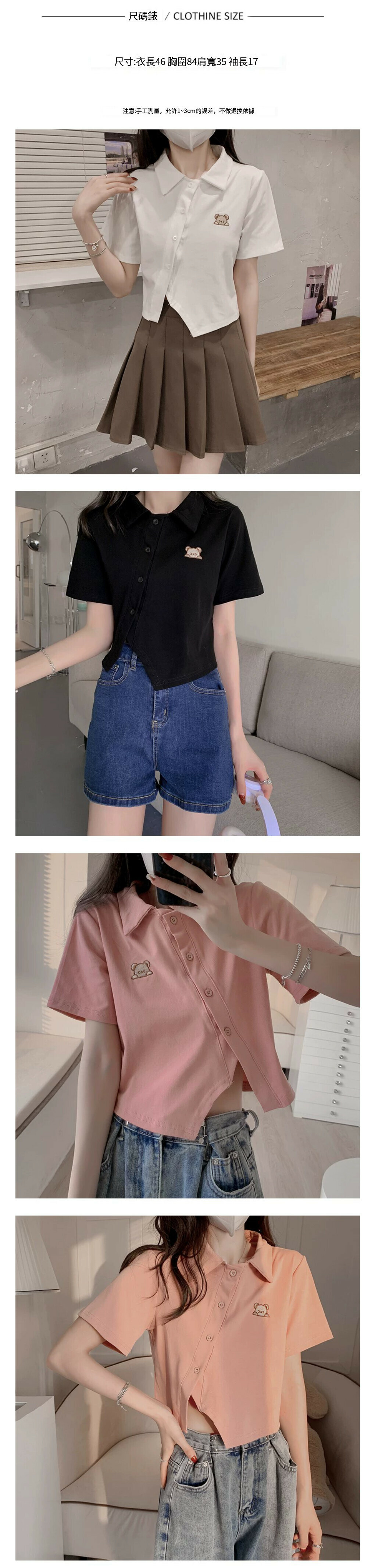 熱賣Polo領不規則短袖T恤【粉色】【均碼】