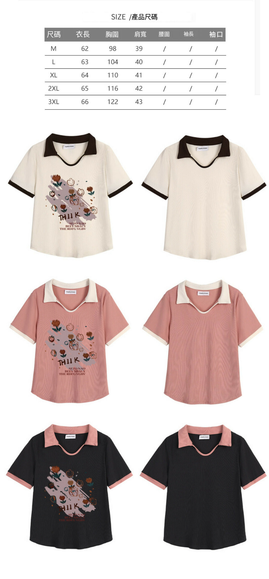 熱賣polo領印花短袖T恤【杏色】【M-3XL碼】(下單後請聯絡客服確認發貨尺碼)