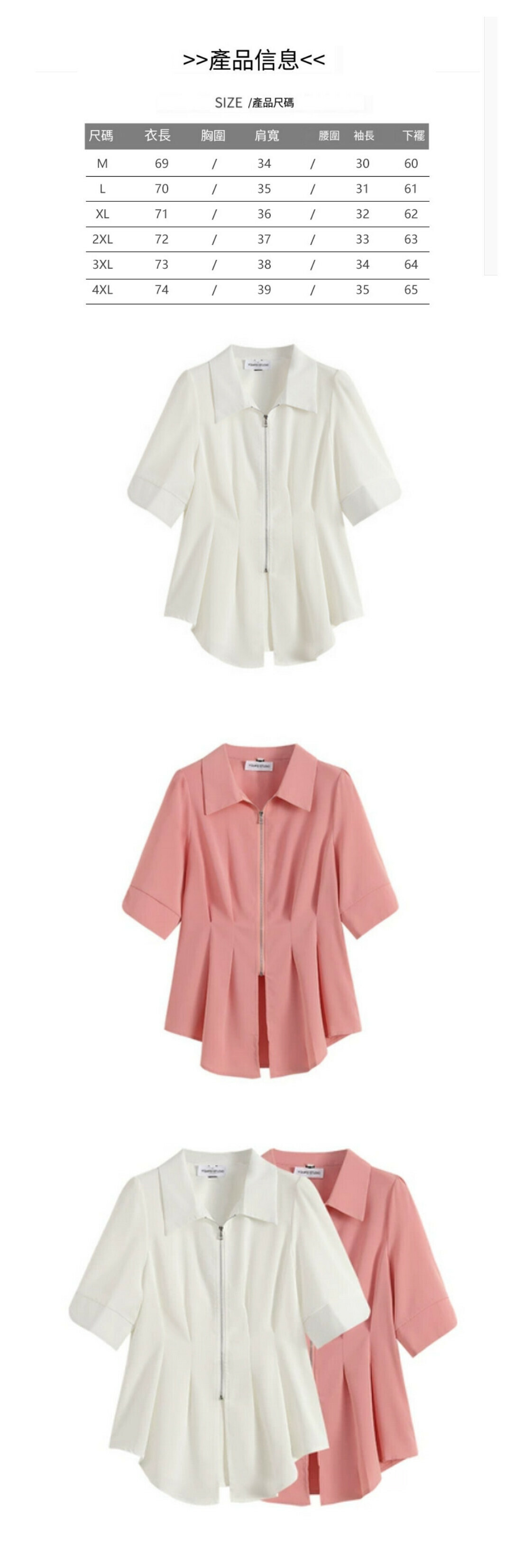 熱賣polo領短款開衫上衣【粉色】【M-4XL碼】(下單後請聯絡客服確認發貨尺碼)