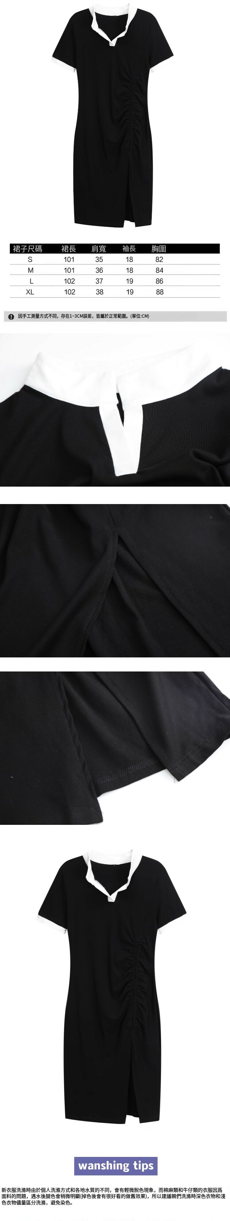 熱賣polo領開衩中長裙(黑色)(S-XL碼)(下單後聯絡客服確認發貨尺碼)