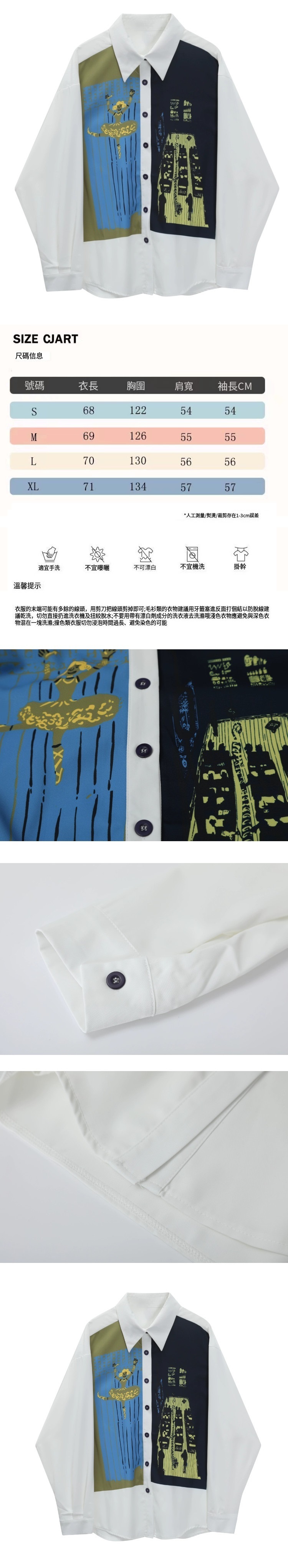 熱賣印花撞色襯衣(白色)(S-XL碼)(下單後聯絡客服確認發貨尺碼)