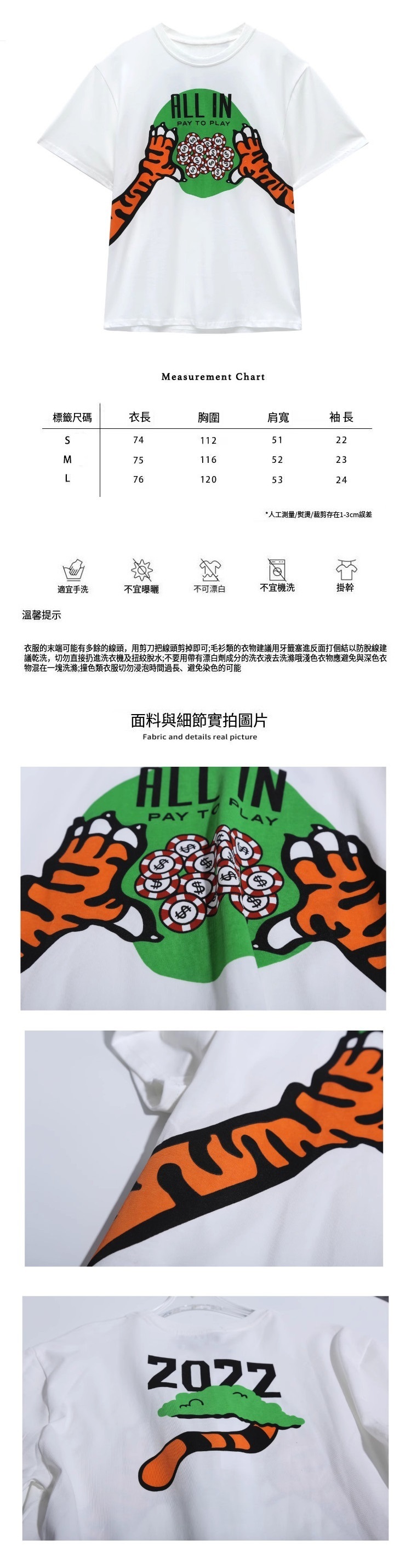 熱賣印花寬鬆半袖T恤(白色)(S-L碼)(下單後聯絡客服確認發貨尺碼)