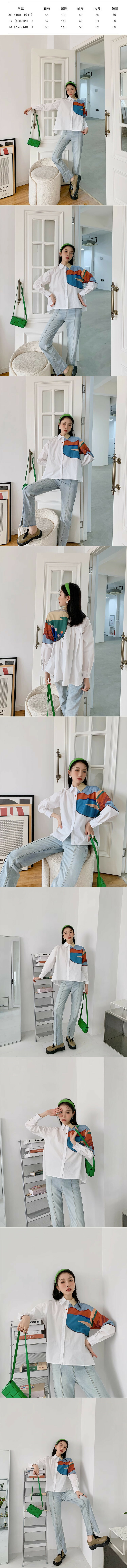 熱賣印花拼接襯衫(白色)((XS-M碼))(下單後聯絡客服確認發貨尺碼)