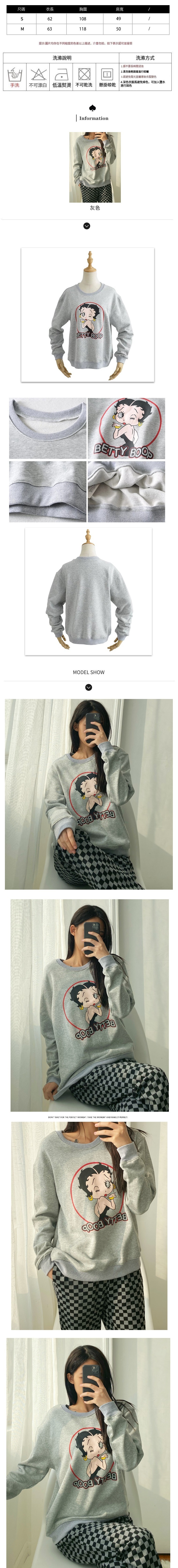熱賣印花套頭長袖圓領寬鬆衛衣(灰色)(S/M碼)(下單後聯絡客服確認發貨尺碼)