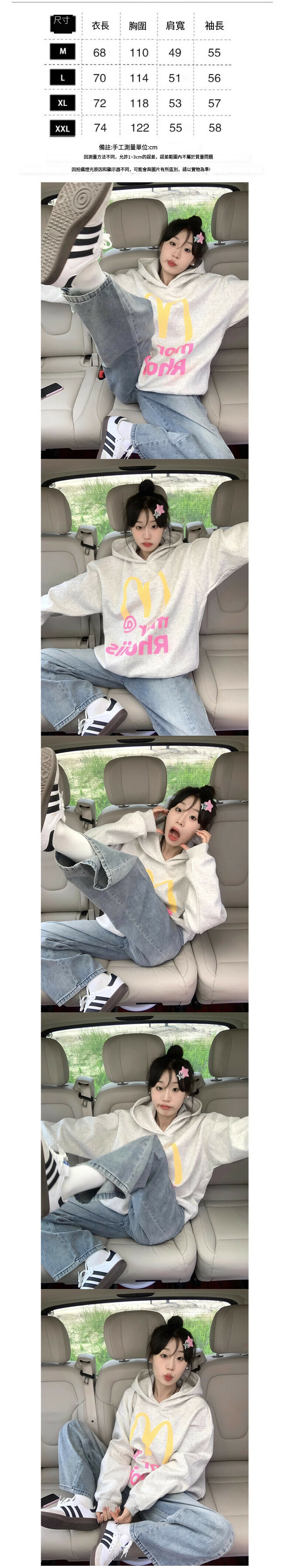 熱賣印花衛衣【白灰色】(加絨)【M-2XL】(下單後請聯繫客服確認發貨尺碼)
