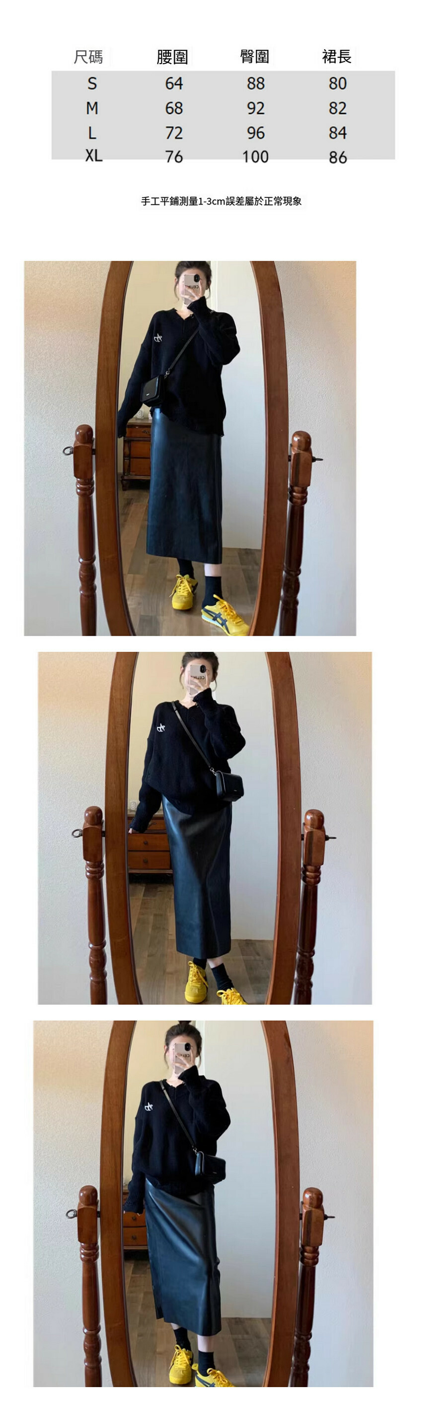 熱賣pu長款後開叉皮裙子【黑色】尺碼【S碼—XL碼】【下單後請聯絡客服確認發貨尺碼】