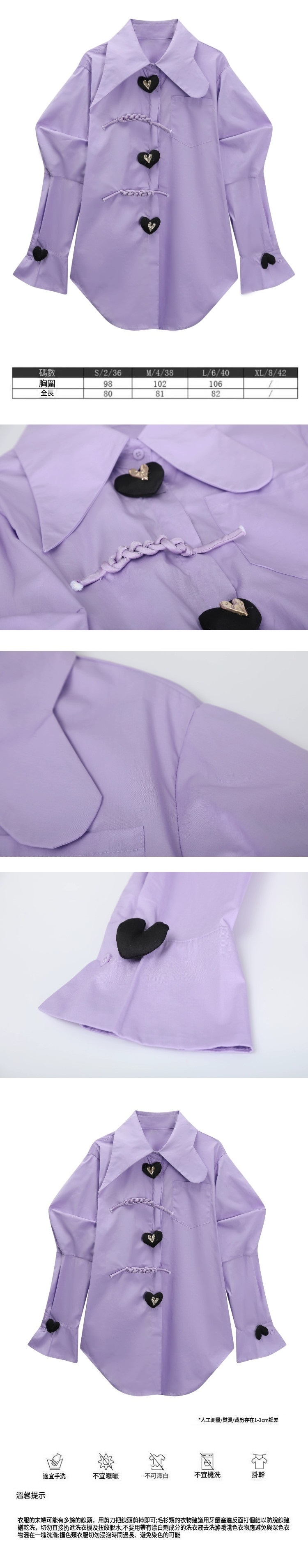 熱賣泡泡袖不對稱領襯衫(紫羅蘭)(S-L碼)(下單後聯絡客服確認發貨尺碼)