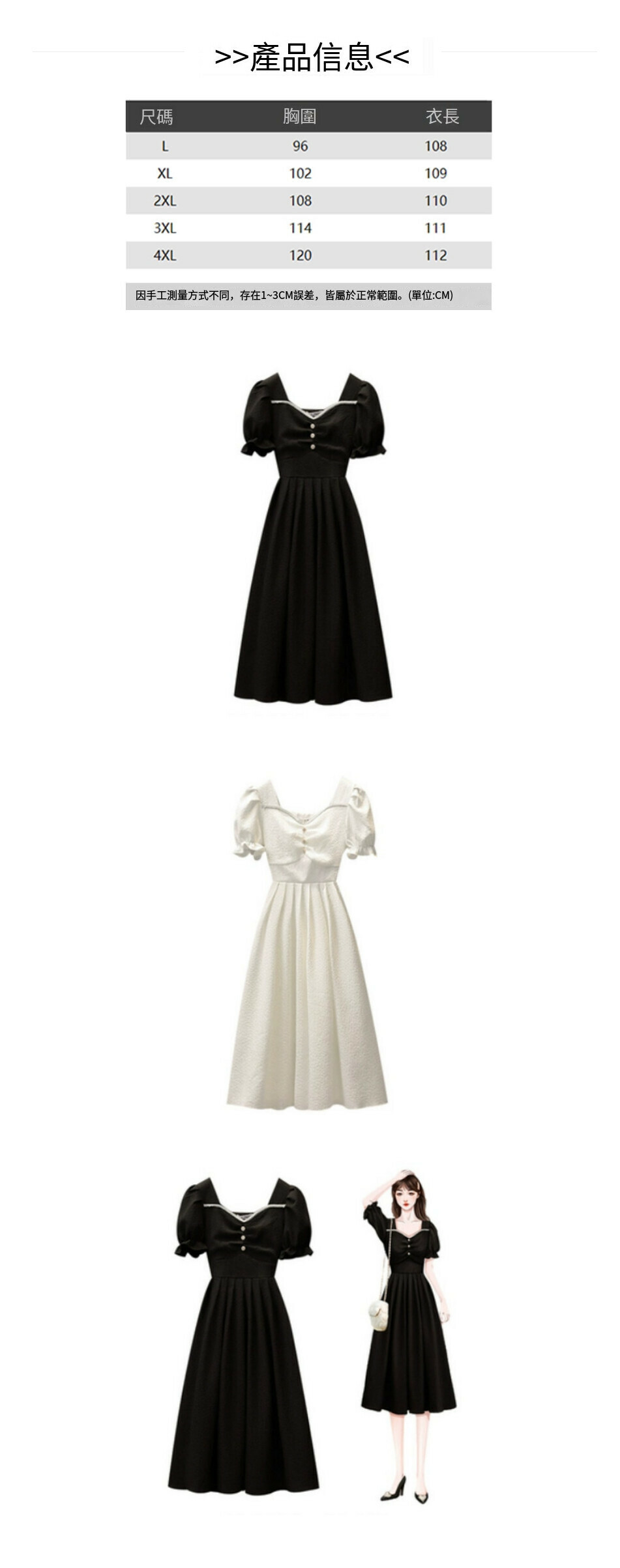 熱賣泡泡袖連衣裙【黑色】【M-4XL碼】(下單後請聯絡客服確認發貨尺碼)
