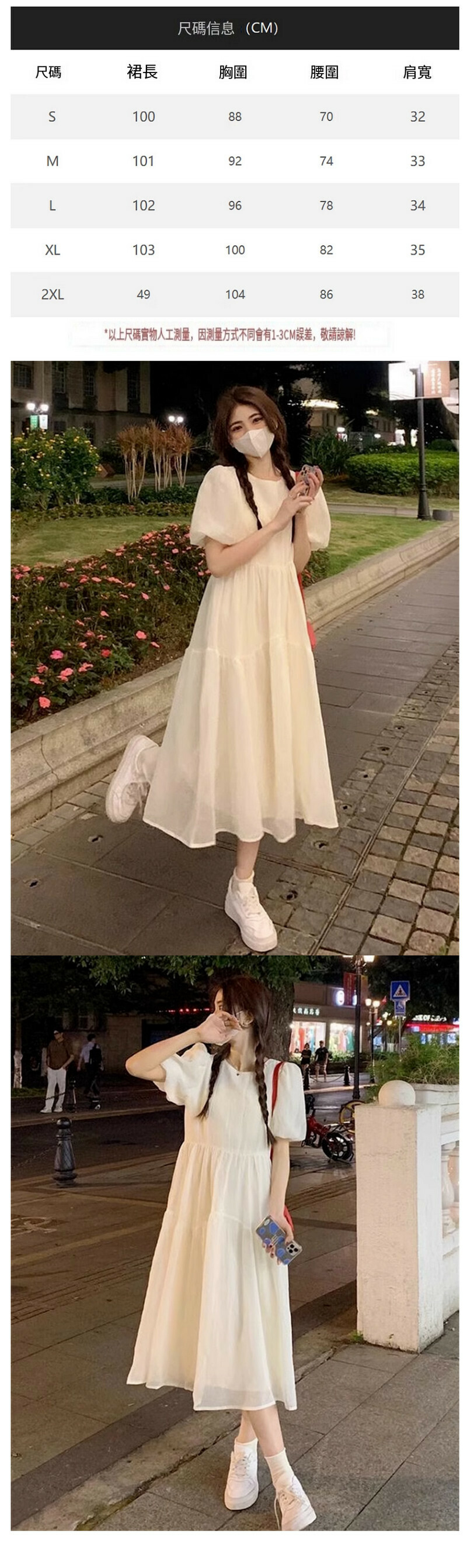 熱賣泡泡袖連衣裙(白色 S碼-XXL碼)(下單後請聯絡客服確認發貨尺碼)