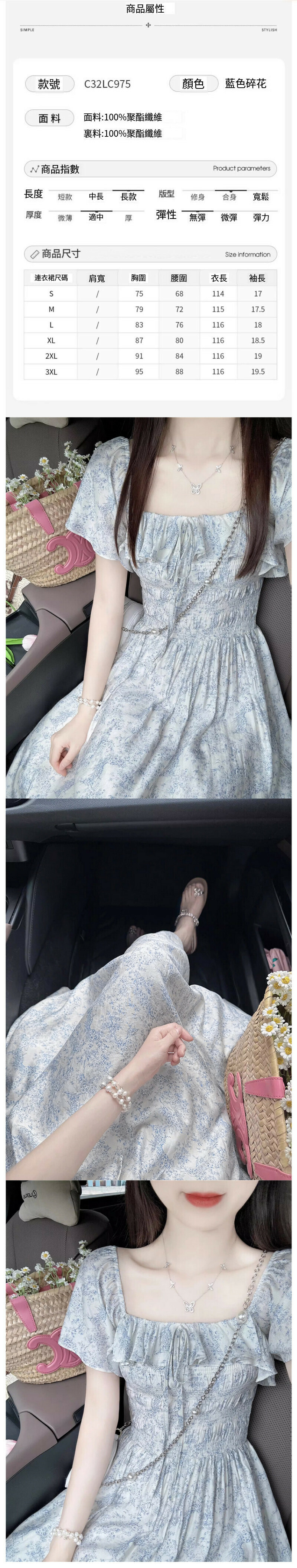 熱賣泡泡袖碎花連衣裙(藍色 S碼-XXL碼)(下單後請聯絡客服確認發貨尺碼)