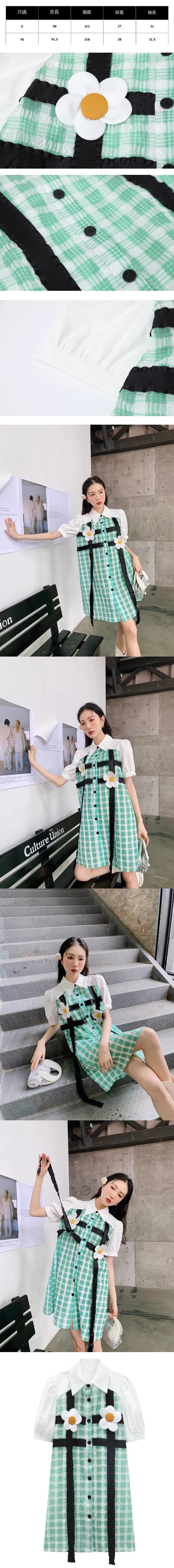 熱賣泡泡袖格子連衣裙(綠色)(S/M碼)(下單後聯絡客服確認發貨尺碼)