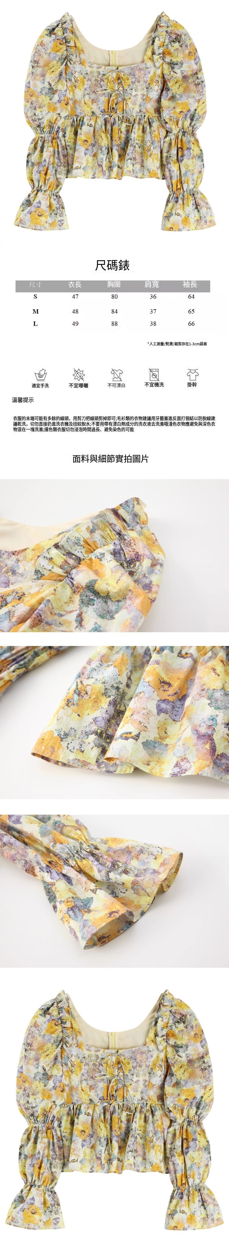 熱賣泡泡袖短款印花襯衫(黃色)(S-L碼)(下單後聯絡客服確認發貨尺碼)