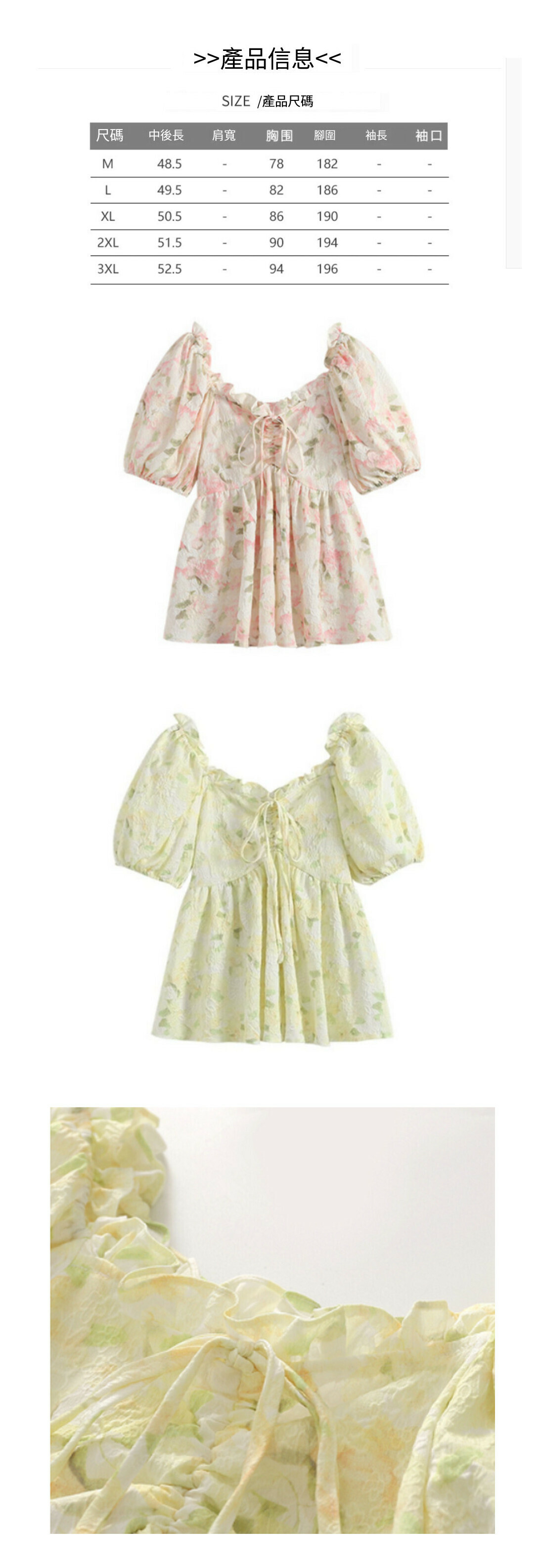 熱賣泡泡袖方領上衣【黃色】【M-4XL碼】(下單後請聯絡客服確認發貨尺碼)