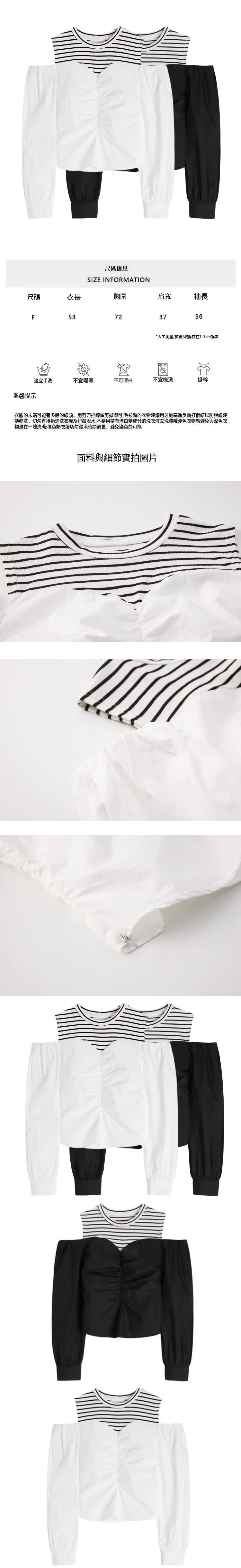 熱賣泡泡袖條紋露肩襯衫(白色)(均碼)